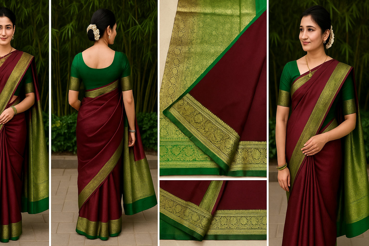 Maroon and Green Kanjivaram Silk Saree with Rich Zari Border