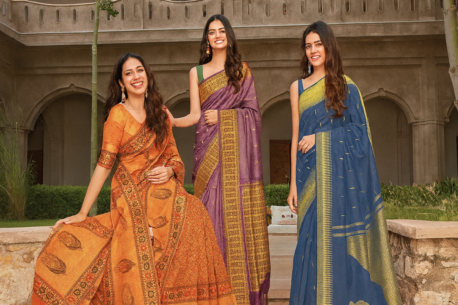 Premium-quality sarees crafted with fine fabrics and rich detailing
