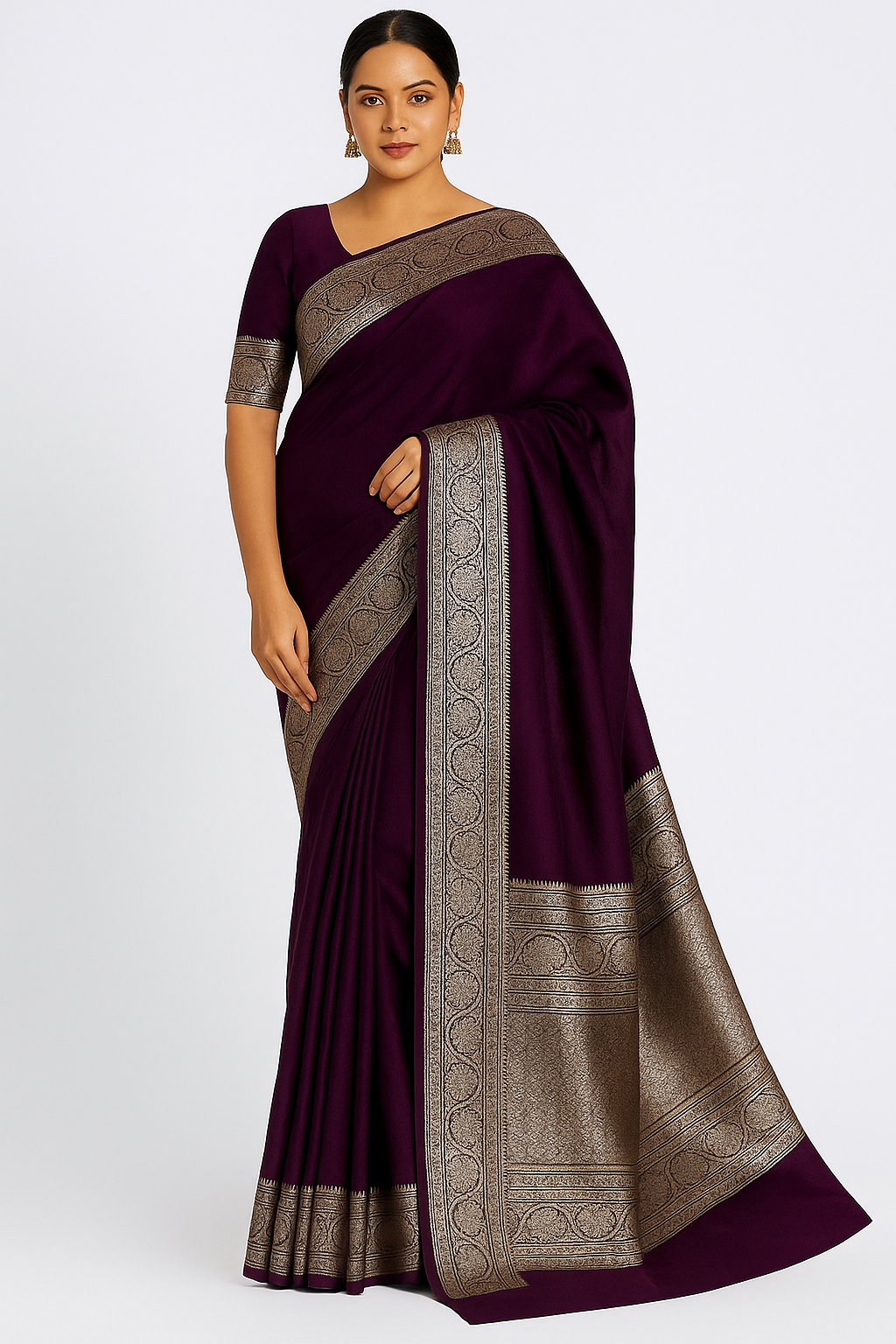 Royal Plum Purple Banarasi Silk Saree with Silver Zari Border and Pallu